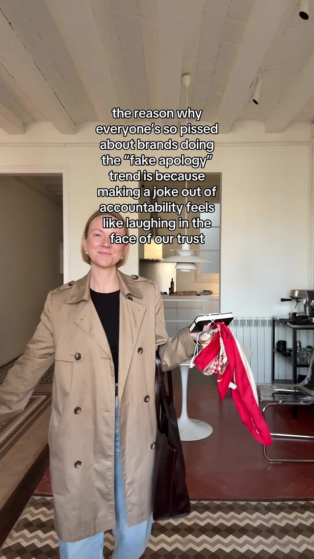 Users are telling us a few things through their distaste for fake apologies and manufactured panic: