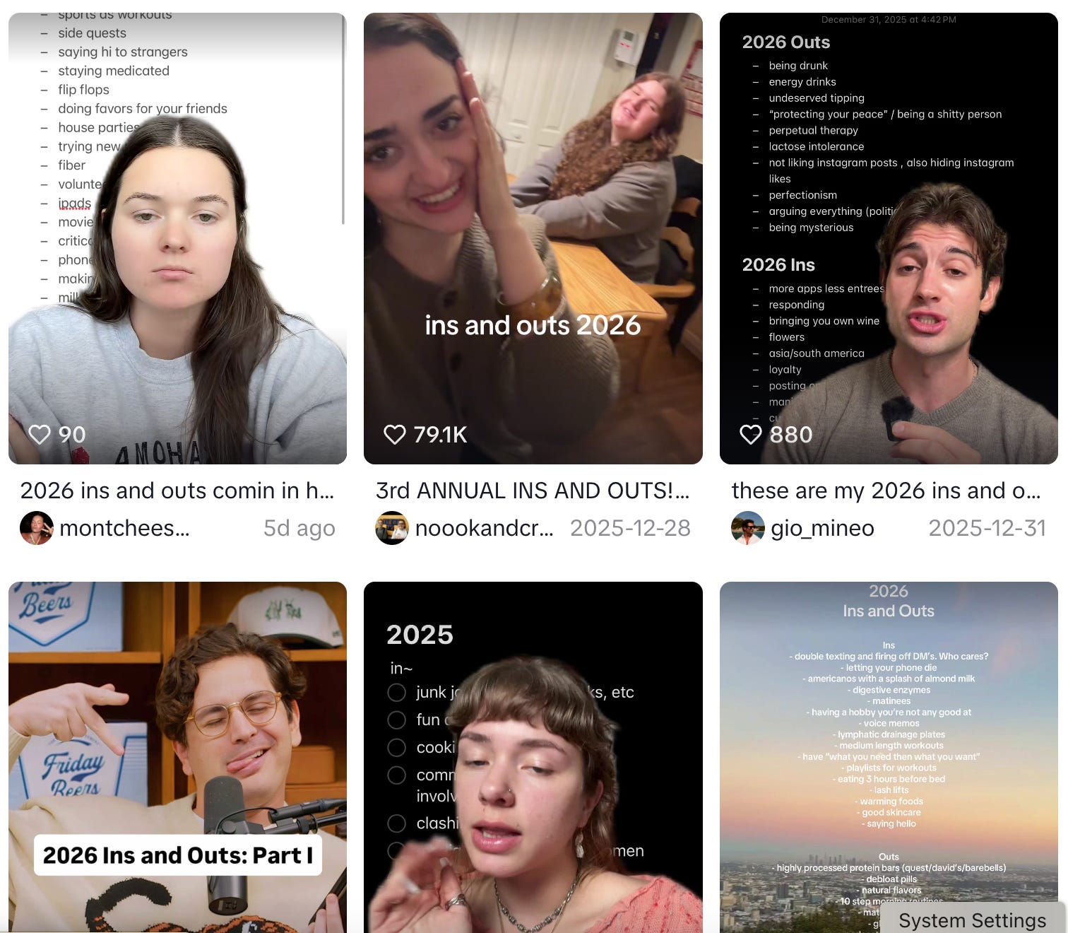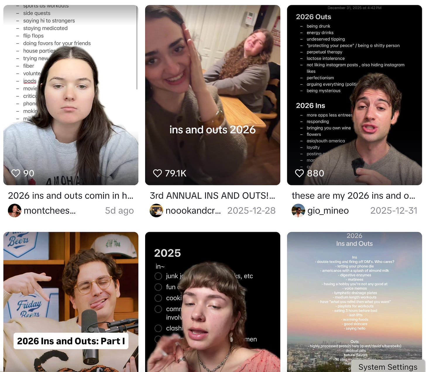 With a new year always comes the same content we can rely on: resolutions and manifestations for the New Year. Historically, New Year’s resolutions are usually centered around wellness goals– weight loss, healthier eating habits, etc. While we didn’t see a complete departure from the traditional goals, with the latest data from YouGov reporting the top priorities for 2026 are Exercising More (25%), Being Happy (23%), and Eating Healthier (22%), in our current world where we see growing concern over health and wellness messaging in pop culture and a desire to be more offline, it is no surprise that we are seeing more content surrounding non-traditional resolutions pick up steam as well.